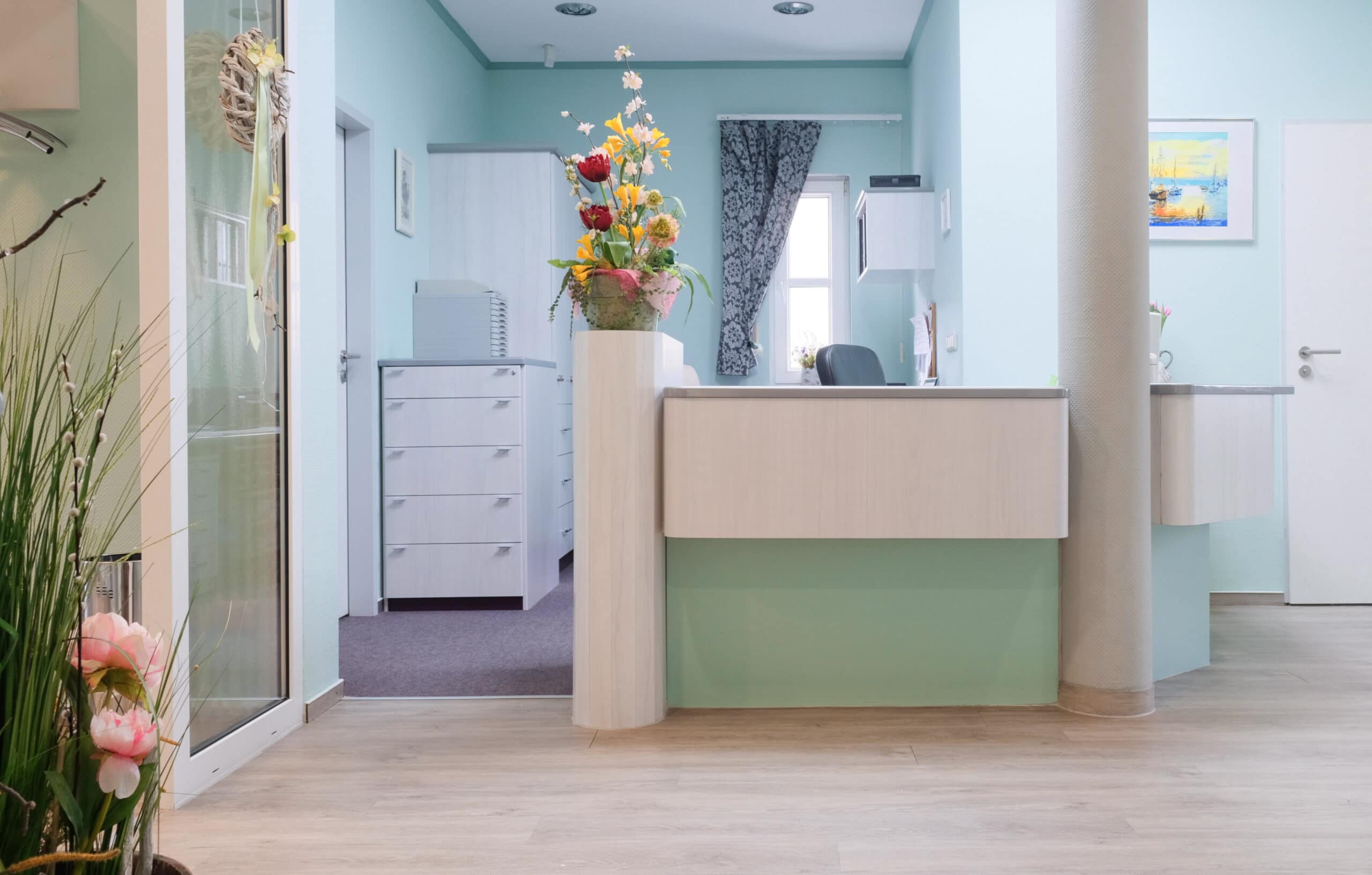 Im Empfangsbereich erwartet Sie unsere nette Anmeldekraft. Eine telefonische Erreichbarkeit wird in unserer Praxis Groß geschrieben. Ein weiterer Arbeitsplatz zur Abrechnung, QM- und Praxismanagementabwicklung steht bereit. Eine EC Kartenzahlung wird angeboten. Auch unser Prophylaxeshop oder Gutscheinkauf wird über den Tresen bedient.