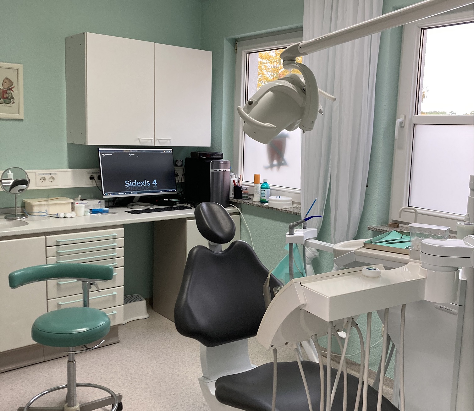 Das größte unsere rollstuhlzugängigen Zimmer nutzt Frau Klingner für tgl. Behandlungen jeglicher Art. Es ist mit unseren praxiseinheitlichem Stühlen der Firma Ritter ausgestattet und bietet eine Digitalkamera mit Bildschirm an. Die Terminvereinbarung ist auch in all unseren Behandlungszimmern digital mgl.